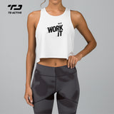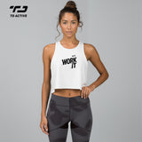TDACTIVE Crop Tank Top Gym Running Anti Bau "work it" nanoamid stretch putih LSE78