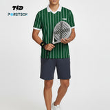 TDACTIVE Jersey Padel Pria Polo PoreTech "green ver stripes" hijau putih MSB25
