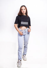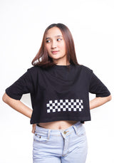 TDLA LTE45 crop top OLC kaos oversize wanita catur hitam