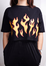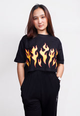TDLA LTE51 crop top OLC kaos oversize wanita yellow fire hitam