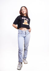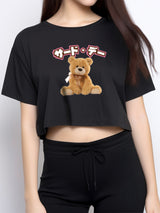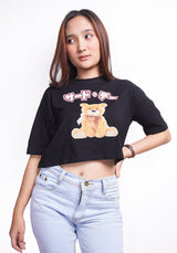 TDLA LTE55 crop oversize OLC wanita hitam beruang pink lucu jepang