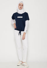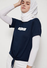 - Kaos bergaya kasual dengan detail word print kontras
