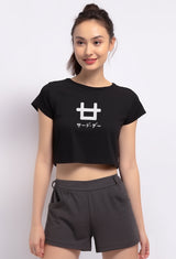 Third Day LTD69 Crop Top Logo Hitam Kaos Casual Wanita