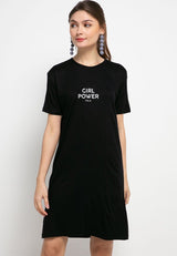 Third Day LTD98 Ld T-Shirt Dress Casual Lds Katakana Girl Power Tdla Hitam