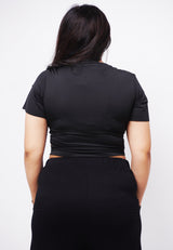 Third Day LTE20 TDLA CRWH Crop Short Sleeve Kaos Casual Wanita Katakana Black