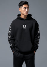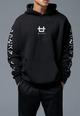 MO106B Hoodies Ktkn Arm Mid Logo Blk Hoodie Hitam