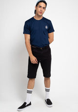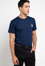 - Kaos basic berwarna solid dengan detail bordir kontras