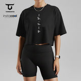 THIRDDAY Kaos Crop Top Oversize Tshirt Wanita Instacool OLC Pendek Tulisan Jepang "Katakana Ver" hitam LTH32