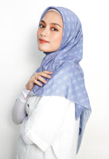WK059 Kerudung Segi Empat Denim Blue Biru Denim Jeans Anti Mleyot Anti Kusut Motif Premium Monogram DAW Project