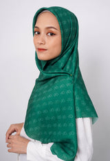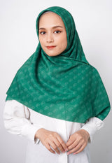 WK066 Kerudung Segi Empat Warna Hijau Emerald Motif Premium Anti Mleyot Anti Kusut Anti Lecek Hijau Emerald