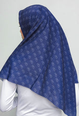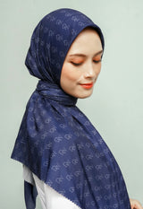 WK077 Kerudung Segi Empat Warna Navy Hijab Motif Premium Anti Mleyot Anti Kusut Anti Lecek Navy
