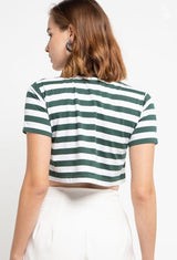 Td Friends LTD54 CL Crop Loose stripe green white draco dakir kaos casual wanita