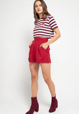 Td Friends LTD52 thirdday CL Crop Loose stripe maroon white ninja dakir kaos casual wanita
