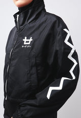 Third Day LO017 Jaket Sporty Parka Crop Wanita Parasit Zigzag Hitam Putih