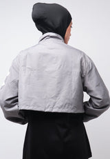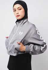 Third Day LO020 Jaket Sporty Parka Crop Wanita Parasit Zigzag Abu Putih