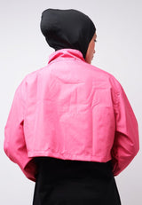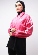 Third Day LO021 Jaket Sporty Parka Crop Wanita Parasit Zigzag Pink Putih