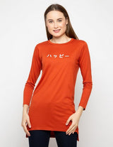Third Day LTC08 mls td happy katakana merah bata kaos tangan panjang hijab