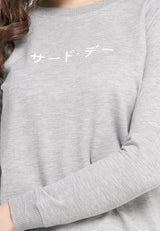 LO006 Thirdday sweater casual wanita dateng katakana abu