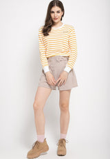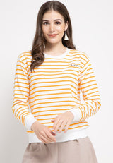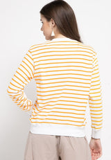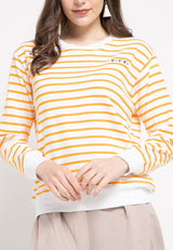 LO011 Thirdday sweater casual wanita dakir katakana stripe putih kuning