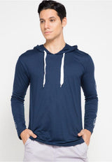 - Detail hoodie dengan tali serut