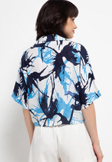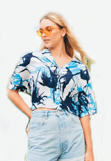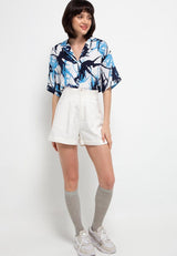 Nade Japan FT046 Kemeja wanita oversize motif daun api putih