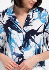 - Kemeja oversize untuk tampilan kasual detail motif abstrak