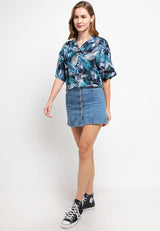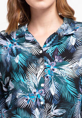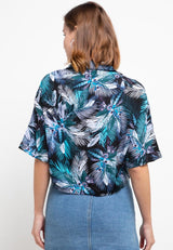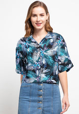 Nade Japan FT054 Kemeja Wanita Casual Motif Tropical Hijau Ungu