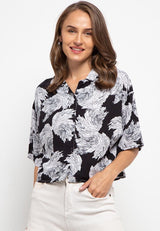 Nade Japan FT071 Kemeja Pantai Wanita Kasual TsunaGeo Hitam