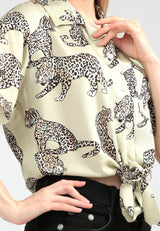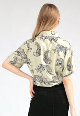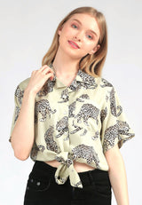 Nade Japan FTA16 KCK Kemeja Crop Knot Leopard Hijau Mint