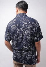 Nade Japan NTB02 Kemeja MKM Men Basic Abstrak 2 Navy Putih