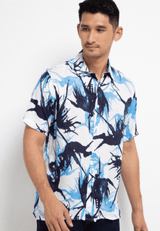 Nade NTA05 Kemeja pria lengan pendek motif daun api putih