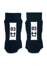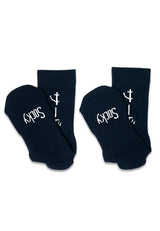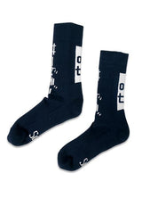 - Kaos kaki monokrom dengan detail text print