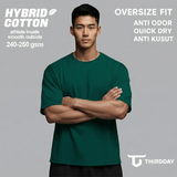 THIRDDAY Kaos Oversize Gym Tebal 250gsm Hybrid Cotton Polos hijau botol MTY92