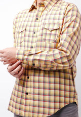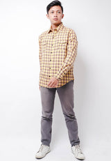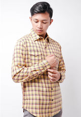 Nade NTB30 Kemeja Flanel Pria Lengan Panjang Tartan Kuning Coklat