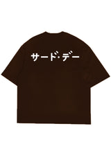 MTN90 kaos distro cowok oversized pria scuba tebal coklat tua katakana back thirdday brown coffee