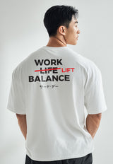 MTS82 Kaos Oversize Gym ScubaLux bahan tebal "work lift balance" putih