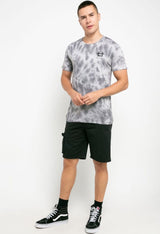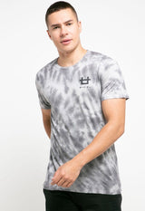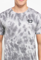 - Kaos lengan pendek bermotif tie-dye dalam nuansa monokrom