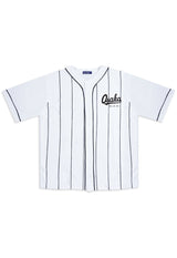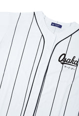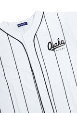 MTS92 Kemeja Baseball Oversize Jersey Garis Hitam "Osaka" Putih