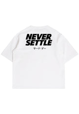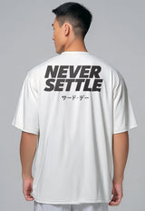 MTX43 Kaos Oversize Gym Bahan Tebal ScubaLux "never settle" putih