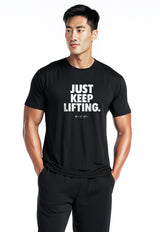 MTX47 Kaos Tema Gym Pria Instacool "just keep lifting" hitam