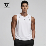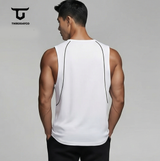Singlet olahraga pria (muscle tee) bernuansa monokrom dengan desain simpel dan nyaman. Menggunakan material poliester ringan, tidak transparan, dan semi-stretch sehingga adem dipakai untuk gym, lari, maupun aktivitas harian.