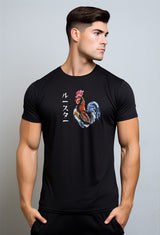 NTC77 kaos pria gambar ayam fighter jago tarung bangkok anti kusut nade hitam