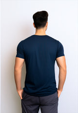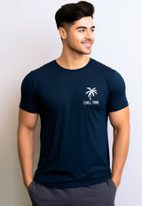 NTD42 Nade kaos pria lentur simple murah ketat keren untuk travelling slimfit stretch body "chill time" navy