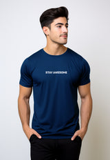 NTD74 kaos slim fit pria anti kusut lengan pendek "stay awesome" navy
