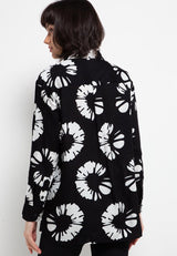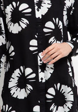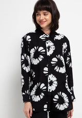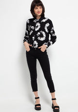 Nade Japan FTA03 FLO Kemeja Flanel Collar Long Outer motif bunga1 hitam putih