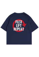 MTO91 kaos oversize gym bodybuilding bahan scuba tebal pria "flex lift repeat" distro cowok navy