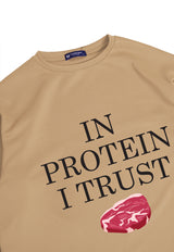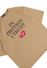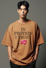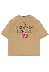 MTO95 kaos oversize gym t shirt bodybuilder bahan tebal scuba pria "in protein i trust" khaki