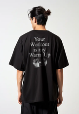 MTP20 kaos oversize gym bahan tebal scuba "your workout my warm up" bodybuilding hitam