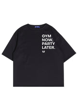 MTP37 kaos oversize gym bahan scuba tebal pria "gym now party later" hitam