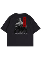 MTP53 kaos oversize gym pria bodybuilding bahan tebal scuba "determination" hitam